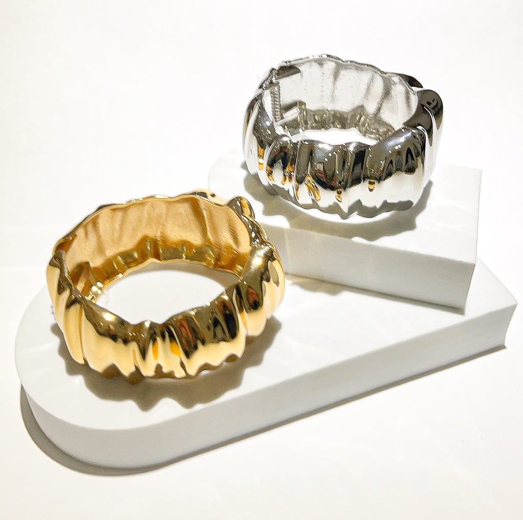 The next time you want to add more statement to your total look, make sure you finish with the Bold Style Metal Cuff Bracelet! Slender metal join cuff bracelet. Cuff measures 2" long with a 2.5" diameter.