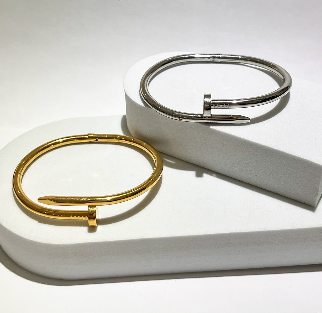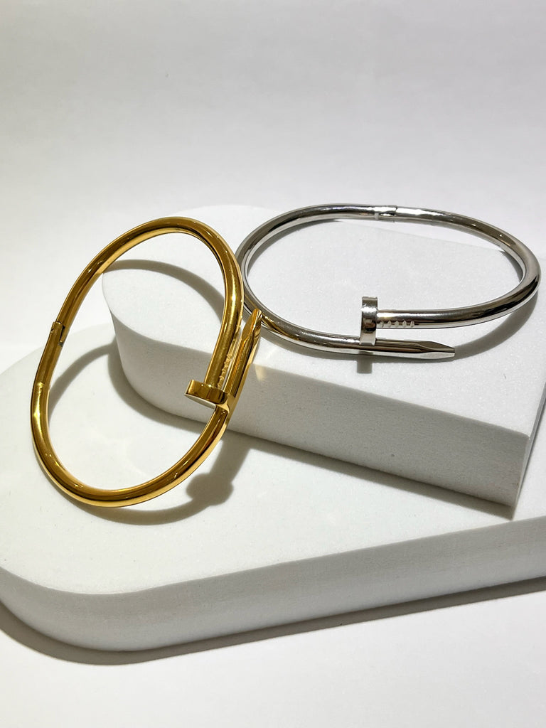 Shining Stainless Steal Bangle with Nail Closure Detail.
