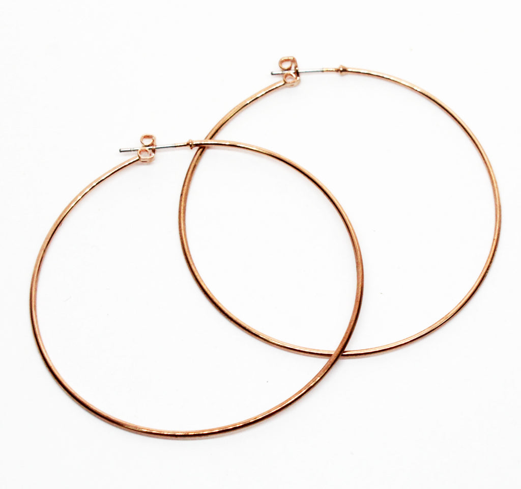 You'll transform into the goddess you are with the Rose Glory Gold Hoop Earrings! Simple and lightweight rose gold hoop earrings. Earrings have a 2" diameter.