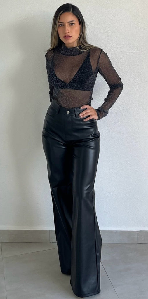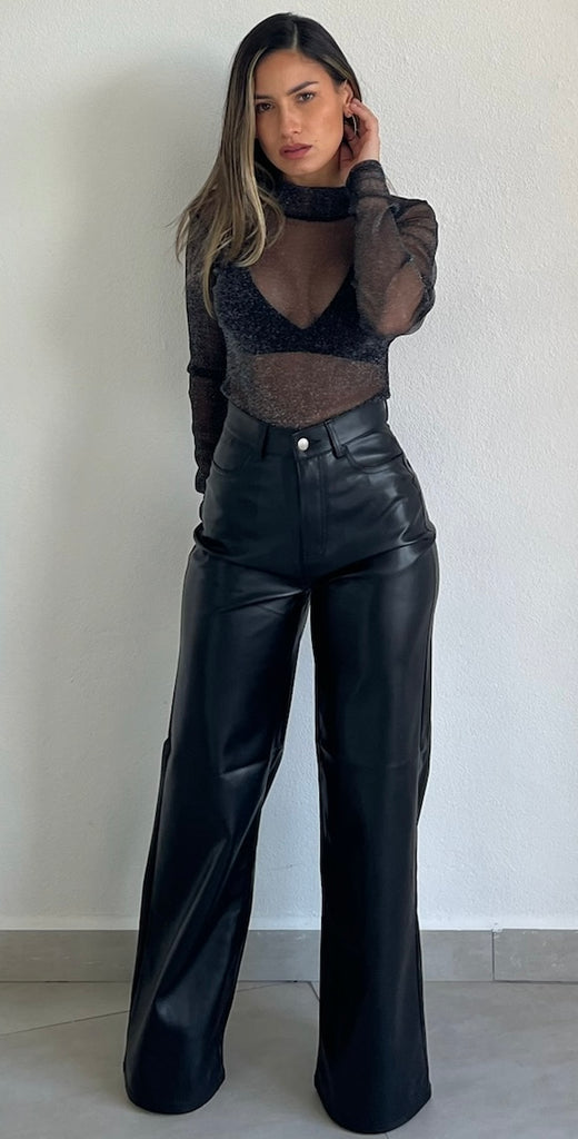 featuring High Waist Wide Leg Vegan Leather Pants.