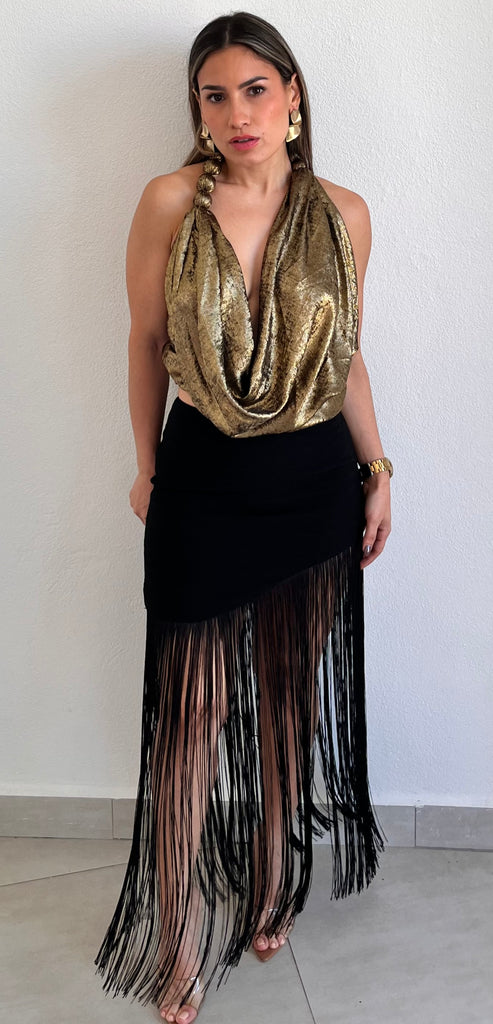 Gorgeous Fringes Asymmetrical Maxi Skirt