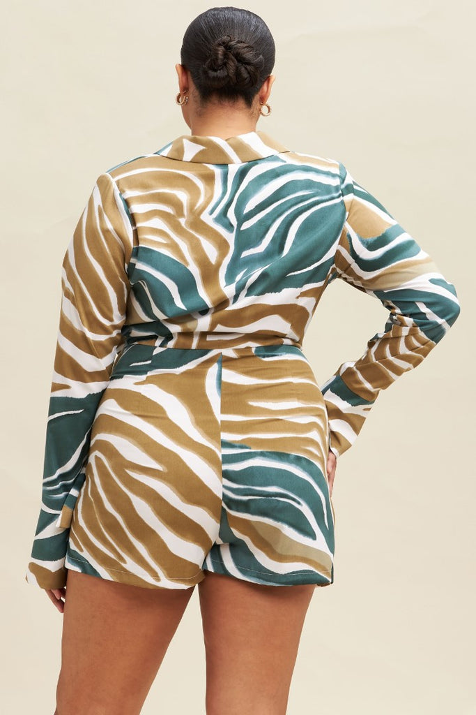 featuring Long Sleeves V-Neck Top, Wrap Around Closure at Front with Adjustable Tie and Shorts In-Side in a Print Fabric.