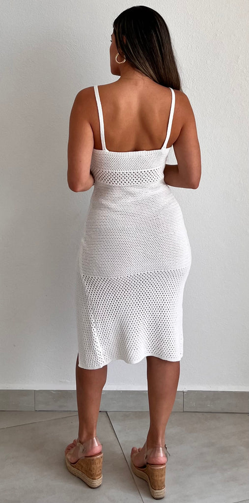 Sunshine Babe White Crochet Midi Dress