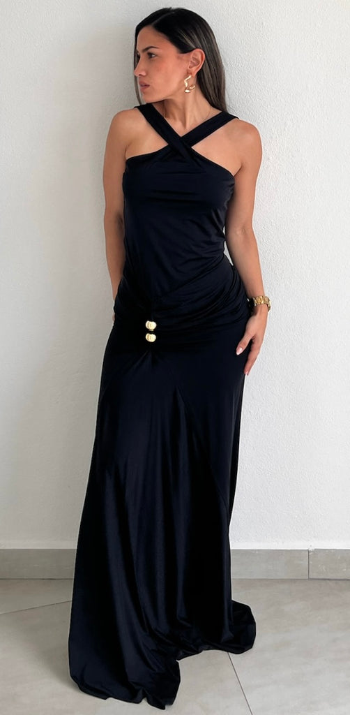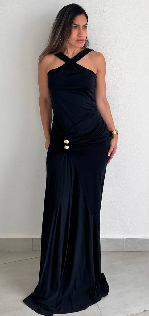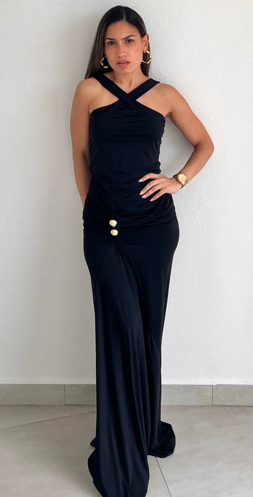 Showstopper Black Halter Long Dress