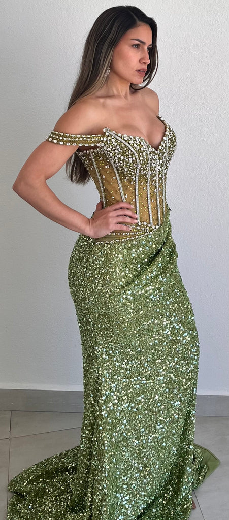 Gorgeous Gems Greenery Sequins Formal Gown