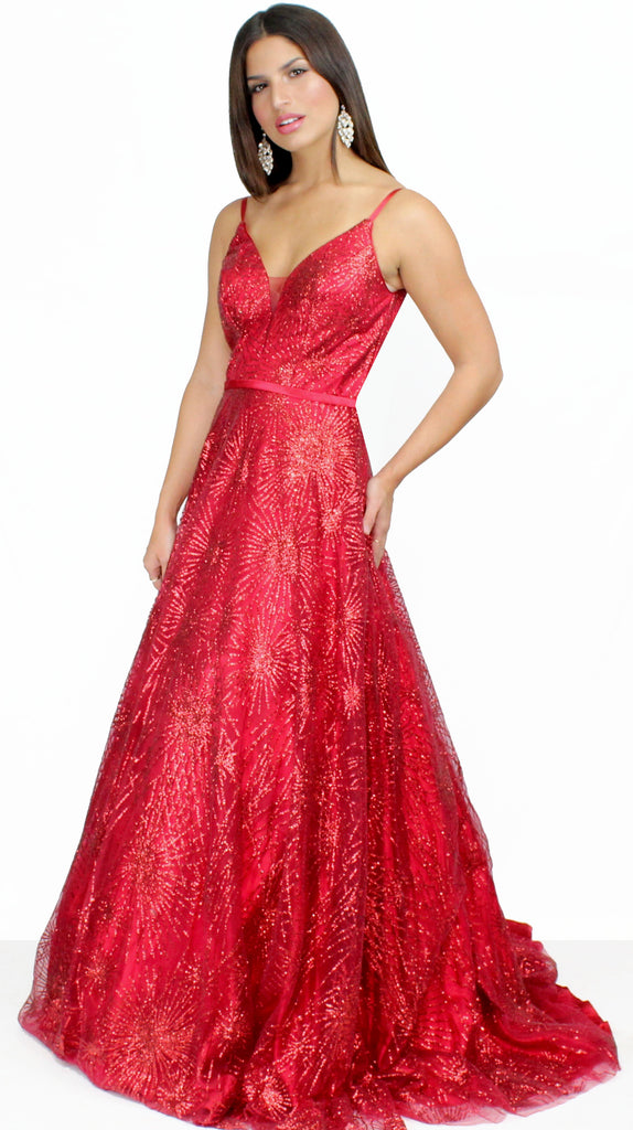 Gorgeous Red Glitter Formal Ball Gown