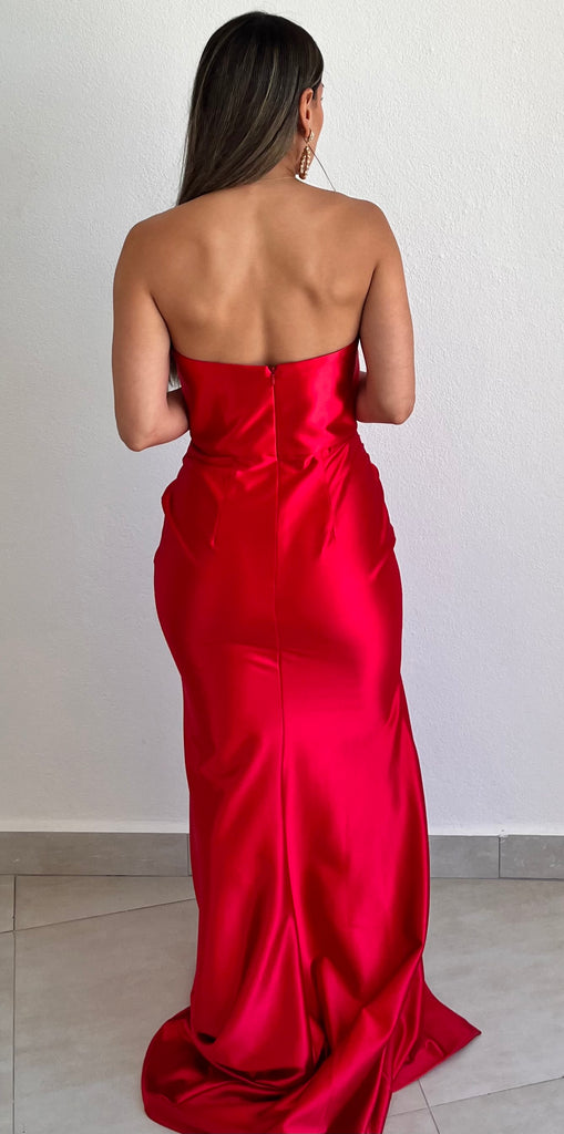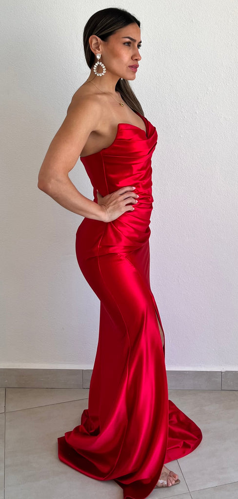 Purely Elegant Red Satin Formal Dress