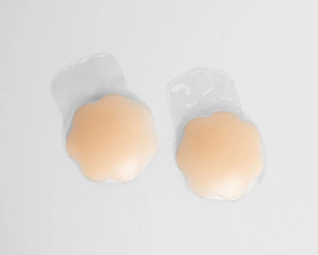 Reusable Silicone Nipple-less Covers with Breast Lifts are the perfect solution to ensure your nipples don't show and keep your breasts lifted and perky while going without a bra, are generally used as undergarments for swimwear, formal dresses, and revealing tops that may not provide enough back coverage for wearing a full bra. After each use, simply hand wash the silicone pasties with warm water and mild soap.