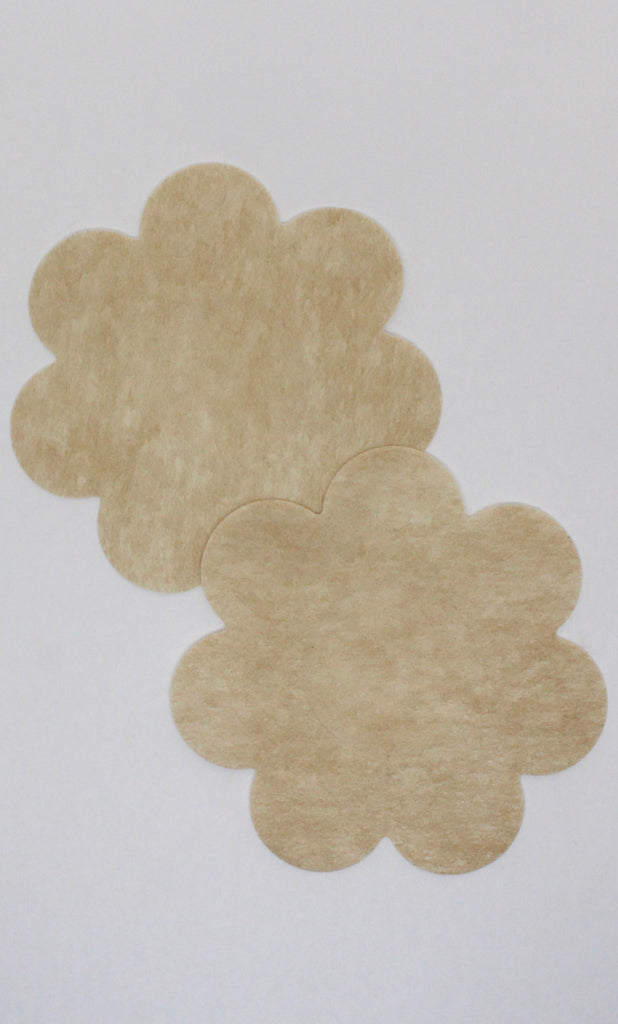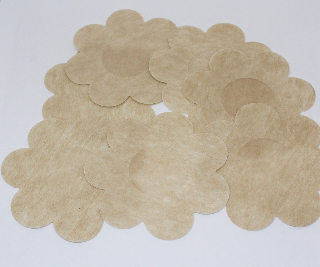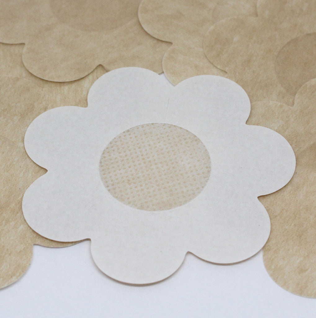 Is your cute cutout or backless dress posing an undergarment problem? Does that shirt seem a little sheer? Have no fear, the Flowers Nipple Covers are here to help! These nude, concealers are adhesive and easy to use anytime you want to "de-perkify"! Centers are non-stick.