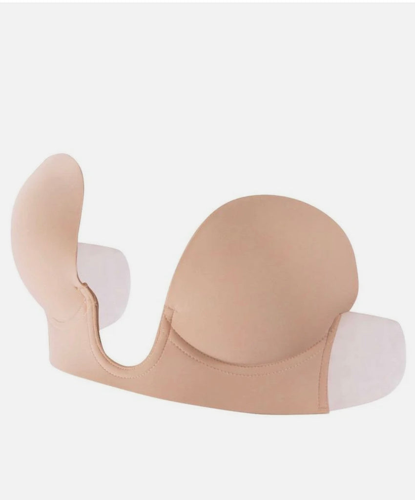 This deep plunge bra uses its higher cut sides to enhance cleavage by pushing the breasts towards the center of the body.