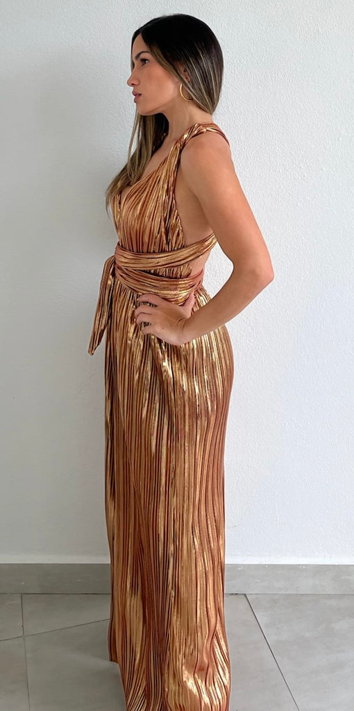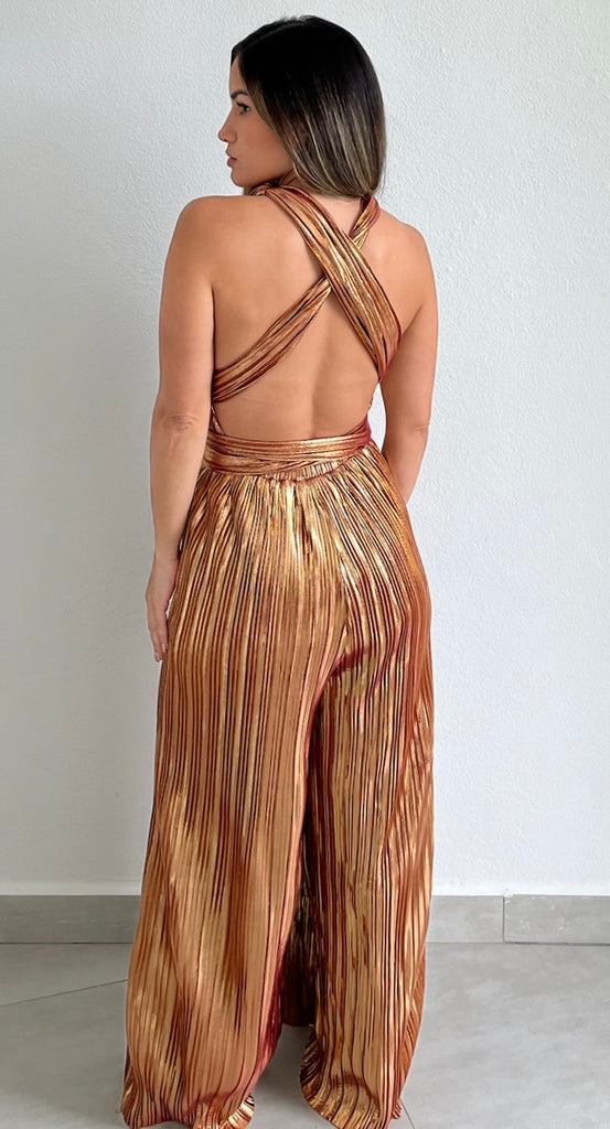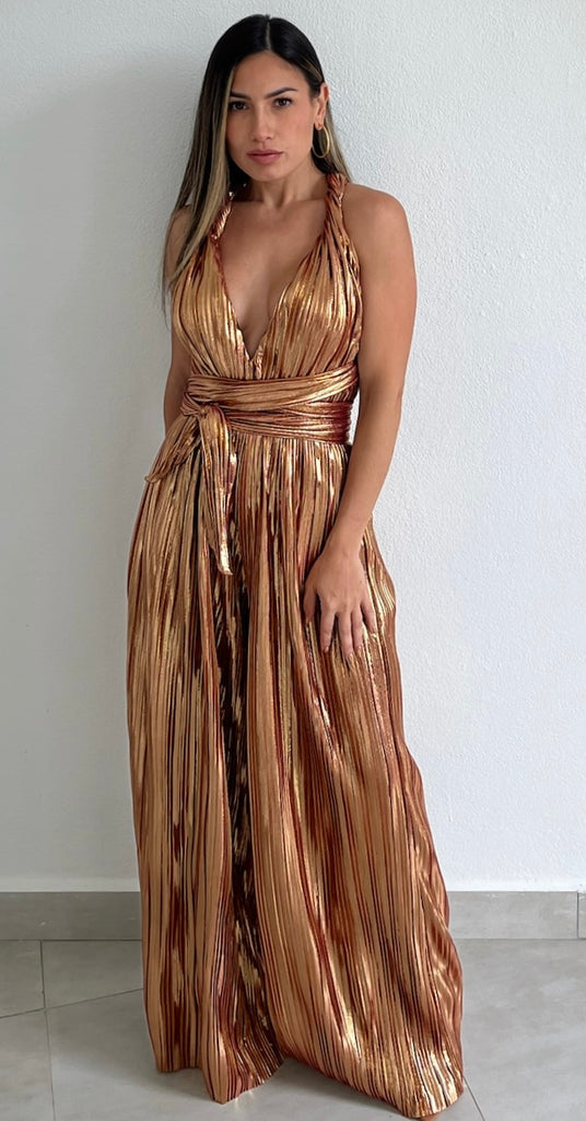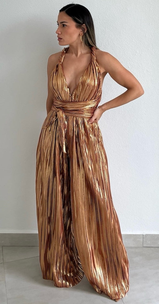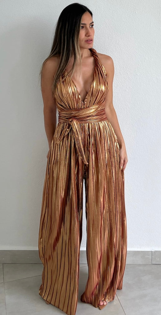 Halter Metallic Bronze Jumpsuit