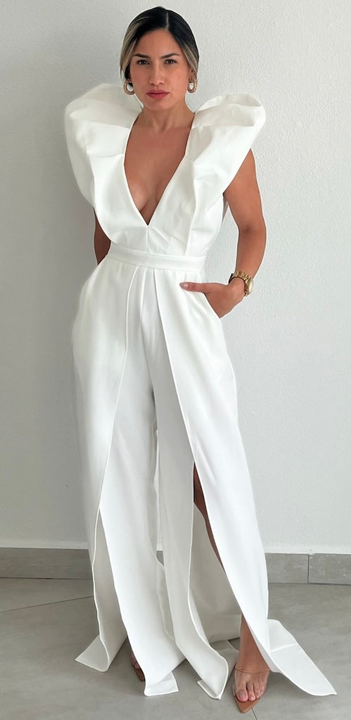 Showstopper White V-Neck Jumpsuit