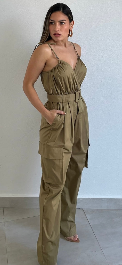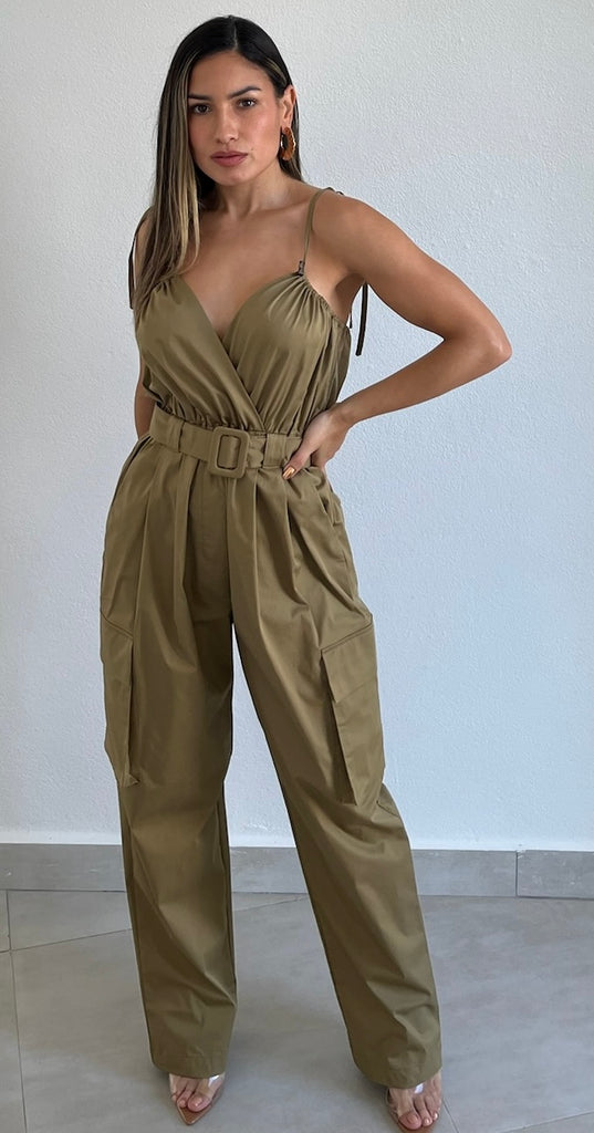 Lovely Olive Cargo Pants Jumpsuit