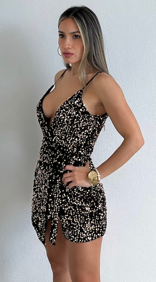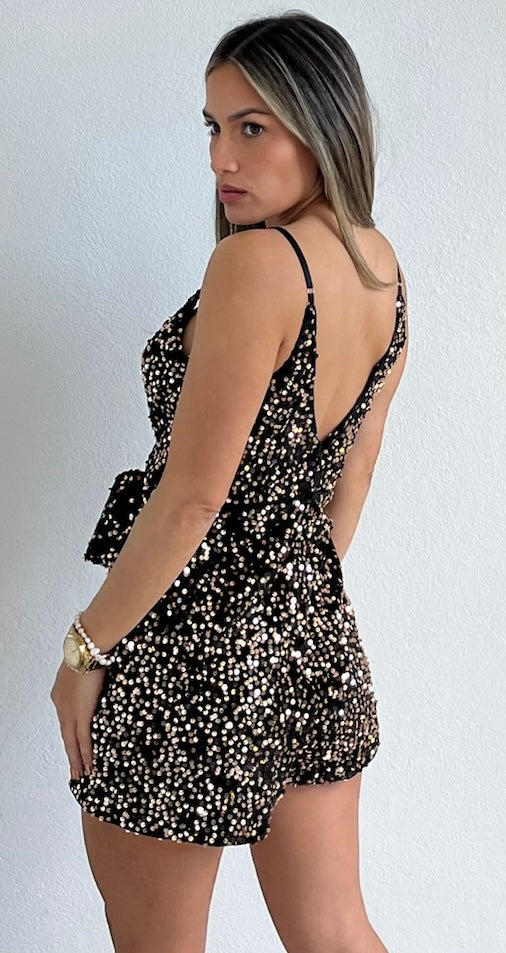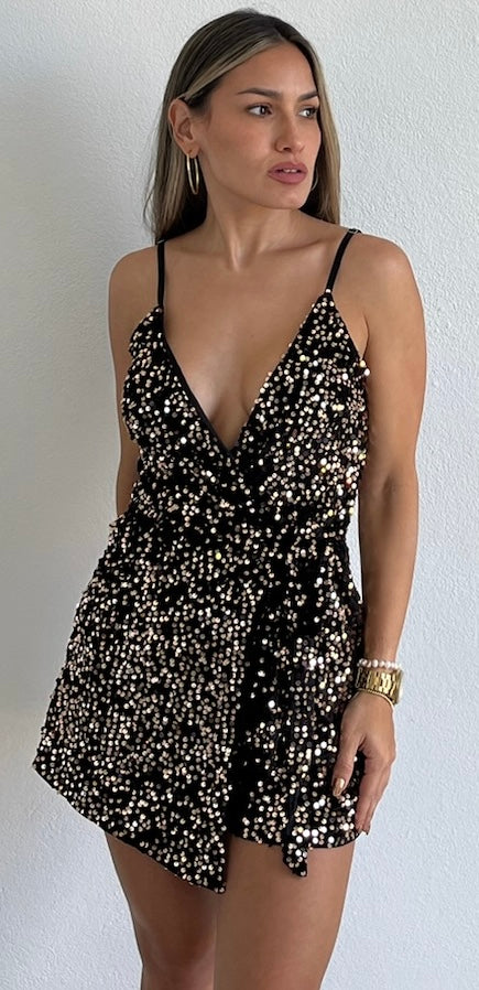 Gorgeous Black & Gold Sequins Asymmetrical Romper