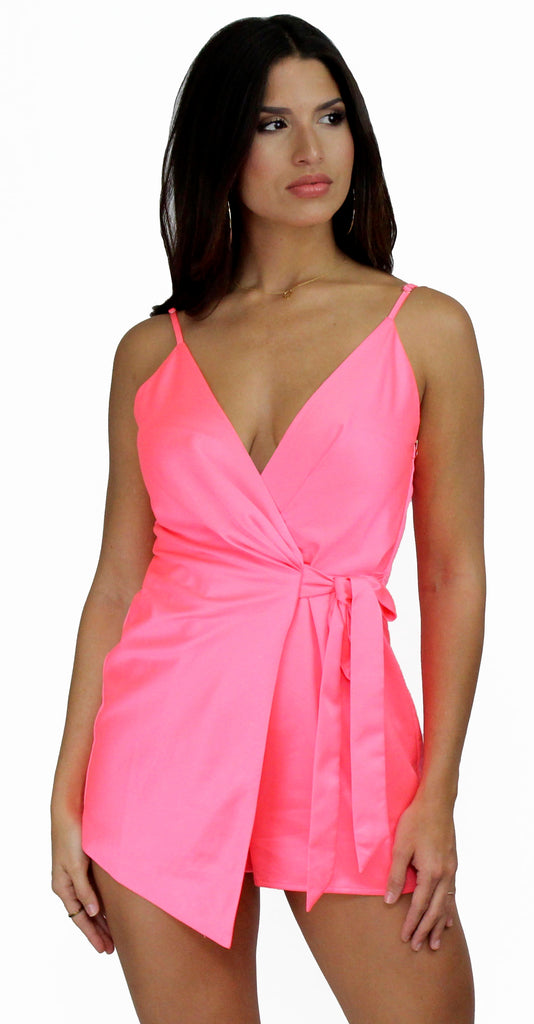 Gorgeous Neon Pink Satin Asymmetrical Romper