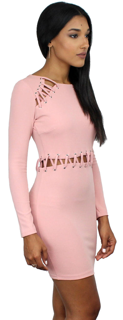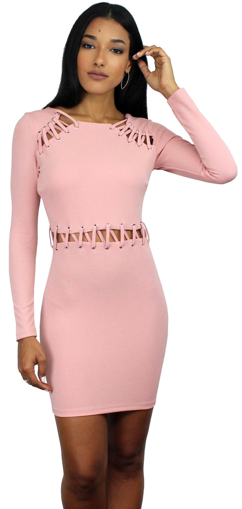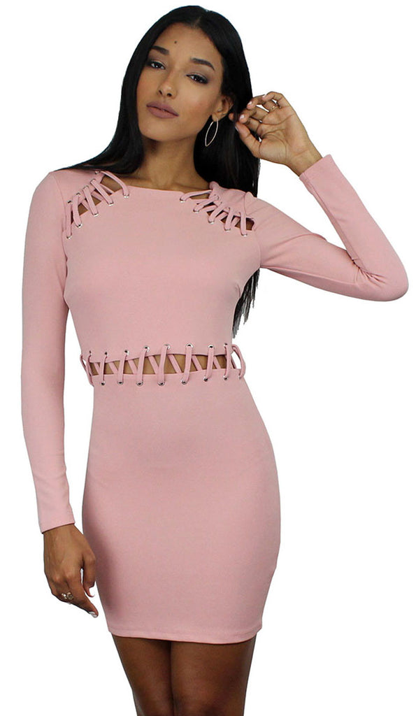 Gorgeous Long Sleeves Pink Bodycon Dress