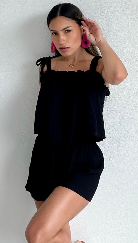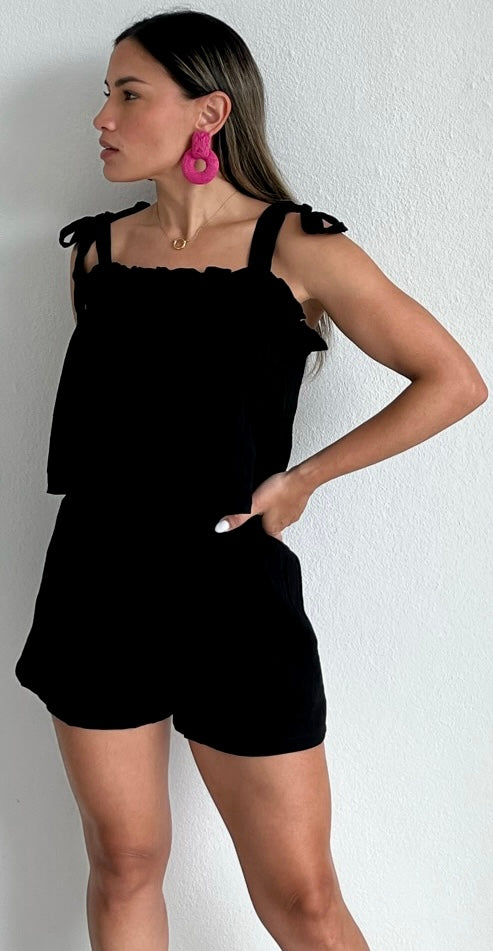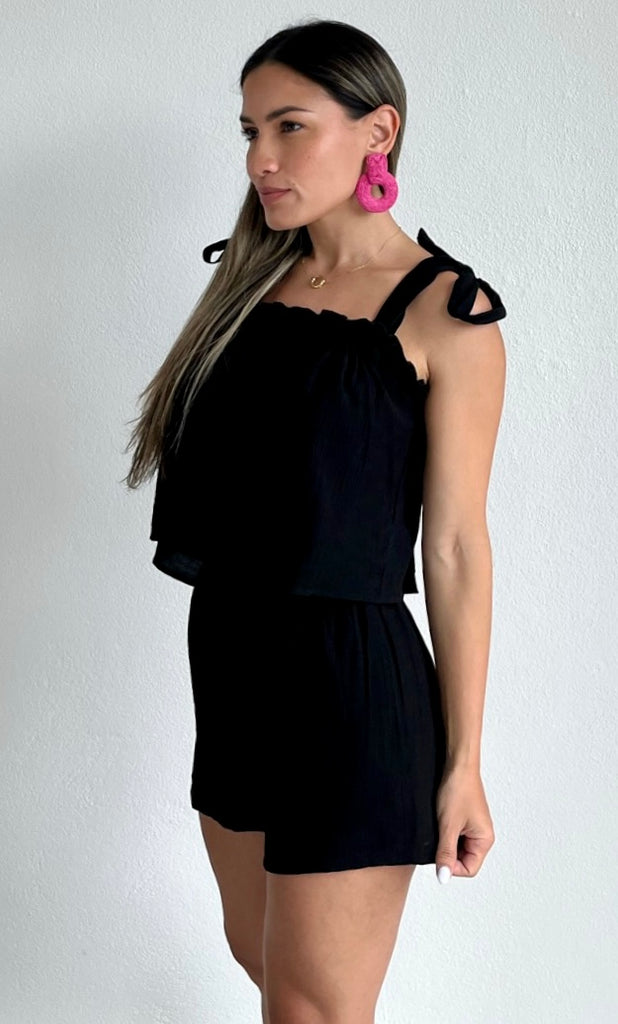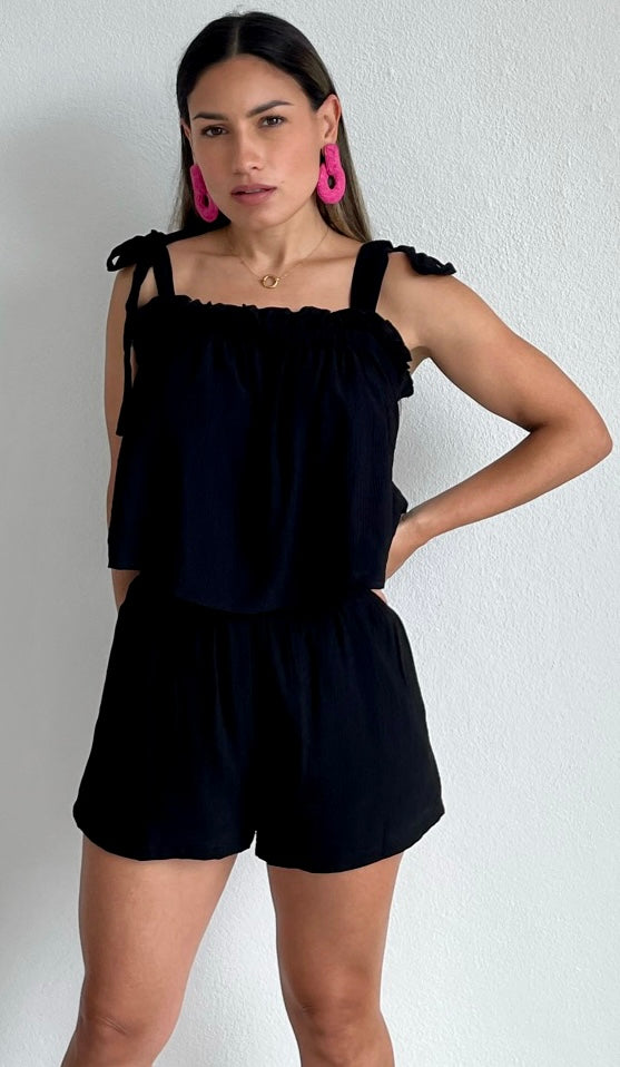 featuring Flare Crop Top with High Waist Shorts in a Light Weight Cotton Fabric.