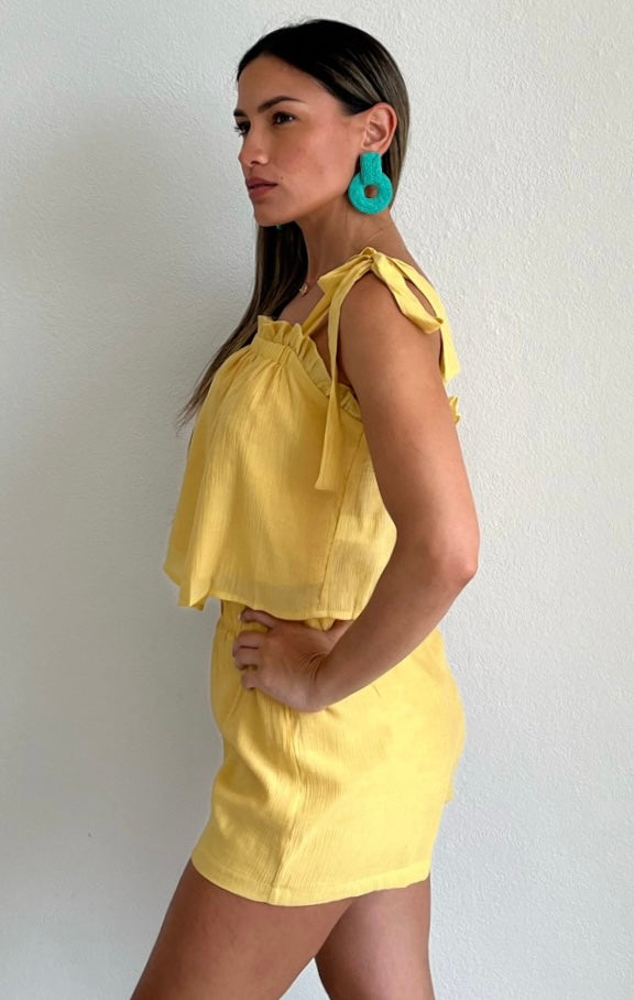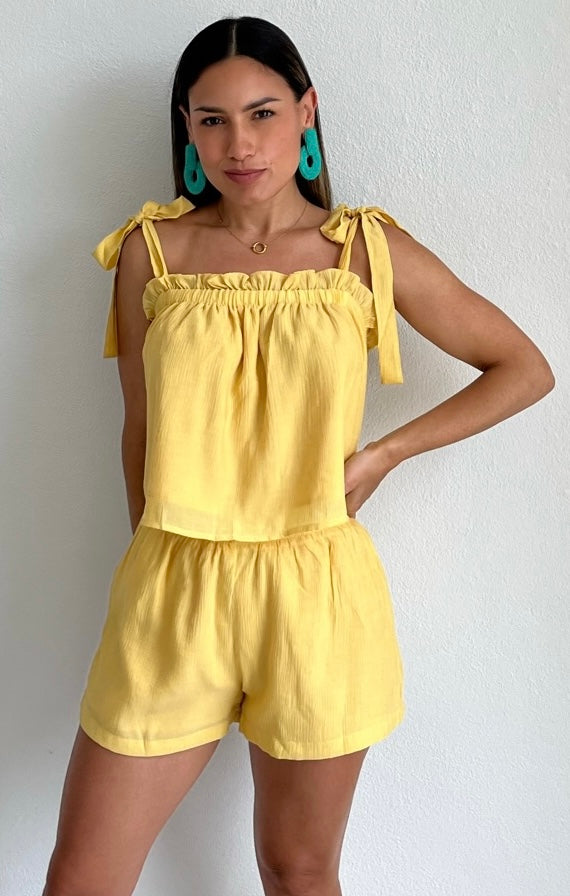 Lovely Yellow Shorts Two-Piece Set