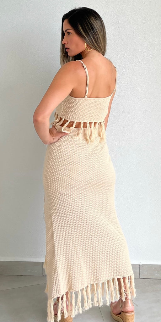 Gorgeous Beige Crochet & Tassle Two-Piece Set