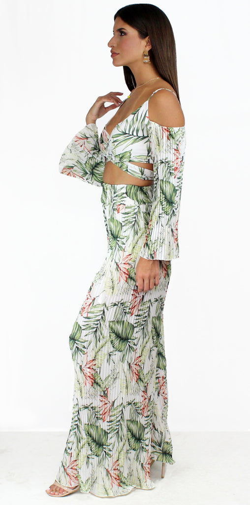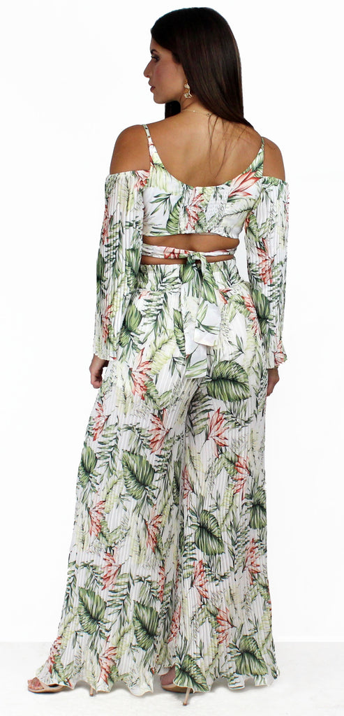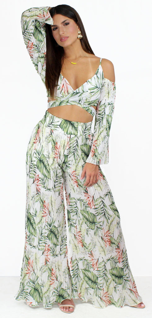 Showstopper Tropical Pleated Palazzo Two-Piece Set