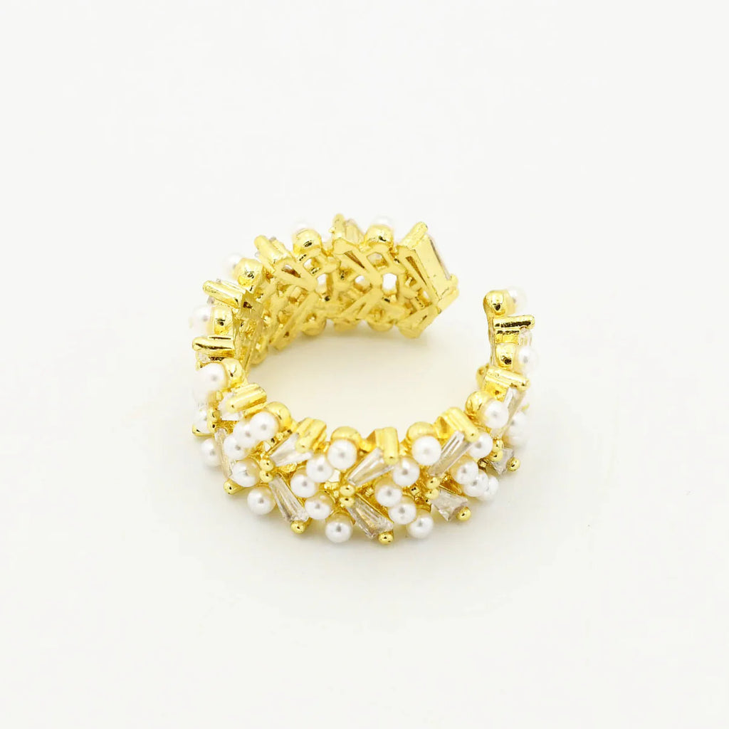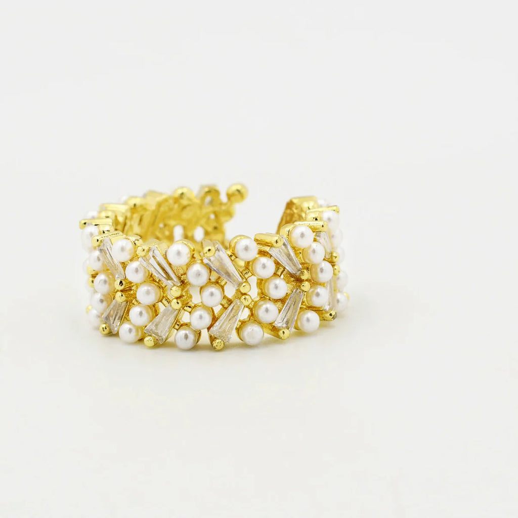 Put an elevated sparkling detail on your everyday ensemble with the All Pearly Gold Ring. Delicate eye-catching ring that features a subtle pearls & crystal in metal gold base. Pair with other jewelry for an extra-luxe look!