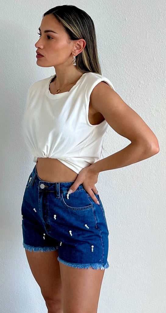 Lovely Pearls Denim Shorts