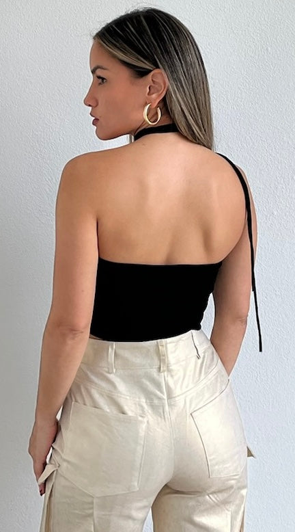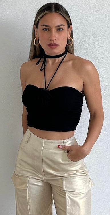 Flower Seductive Black Halter Crop Top
