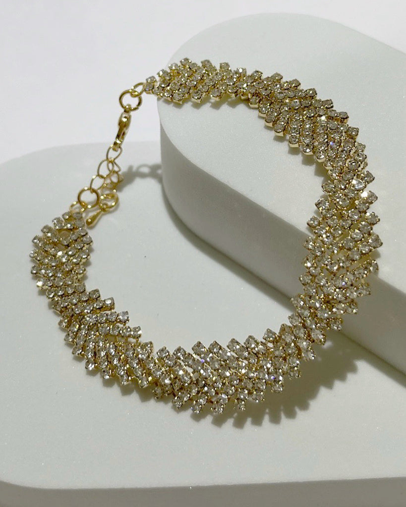 Date night just got a little more sparkly thanks to the Luxe Glitter Gold Rhinestones Bracelet! Shiny, gold-toned metal shapes this elevated bracelet that has a braided band of glittering baguette-cut rhinestones, with a Lobster Clasp closure.