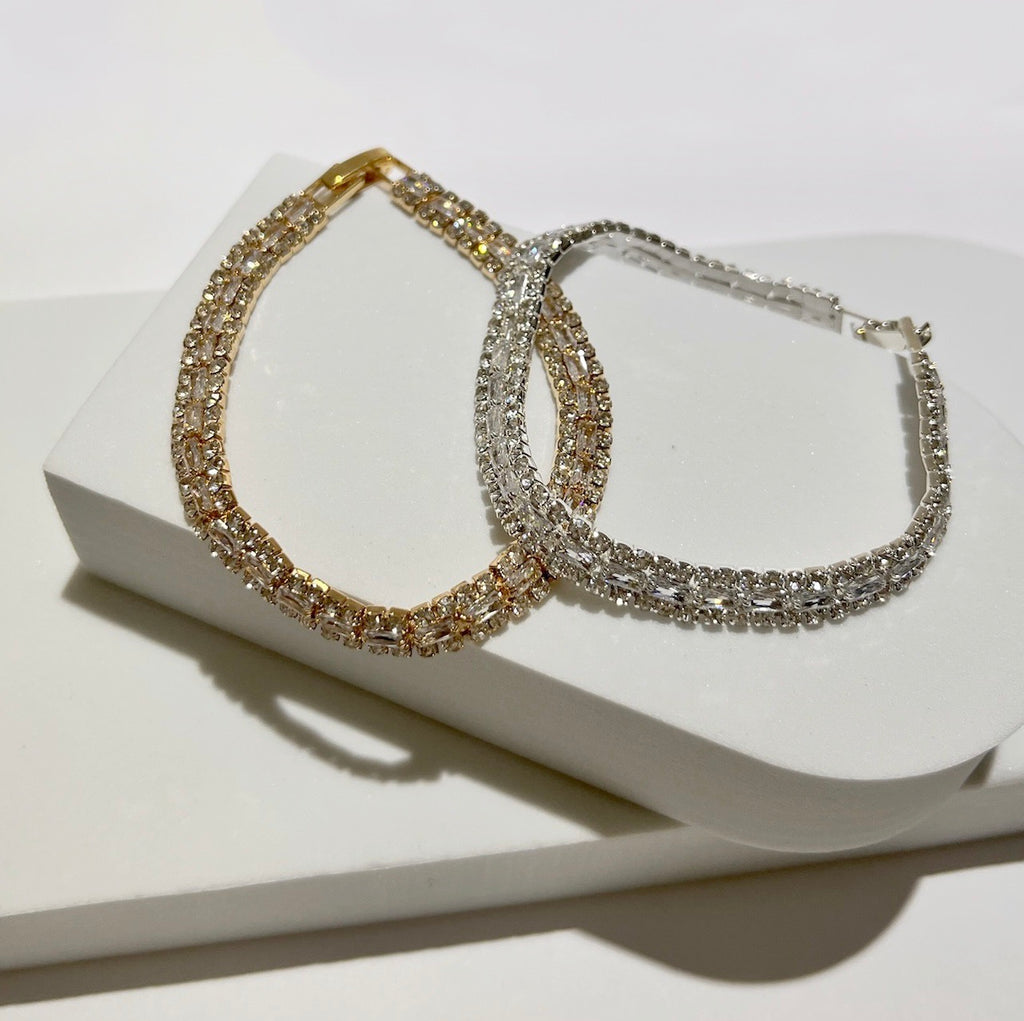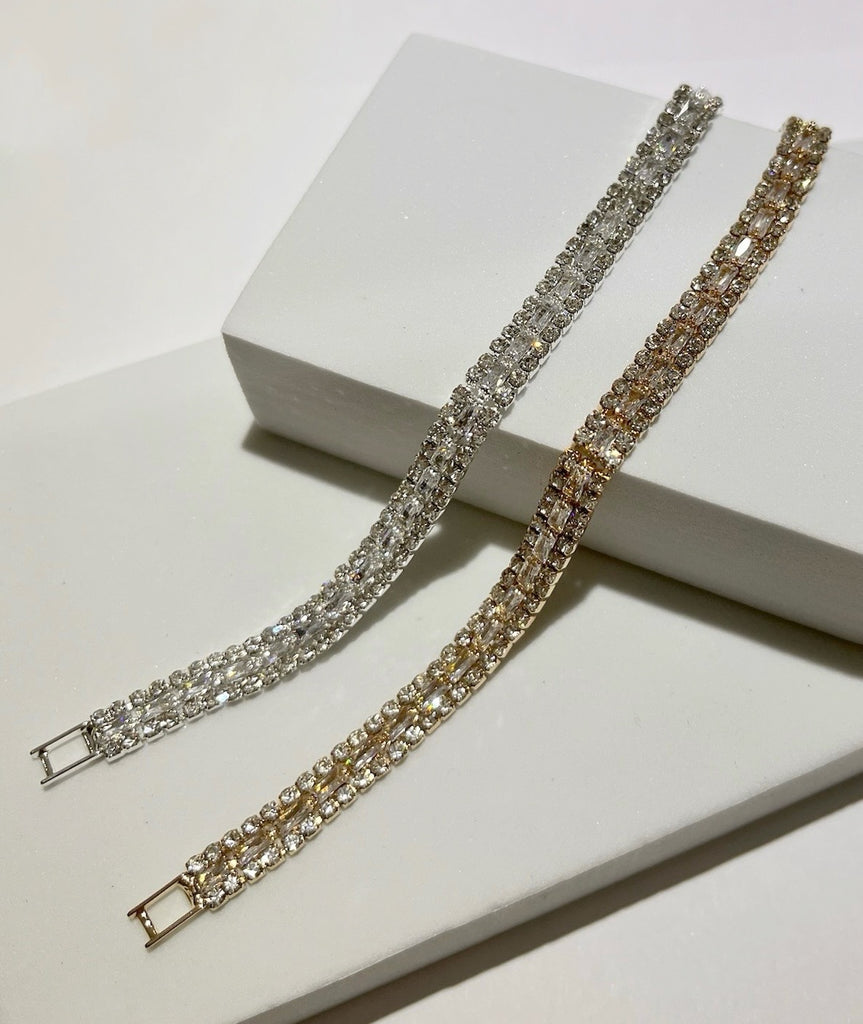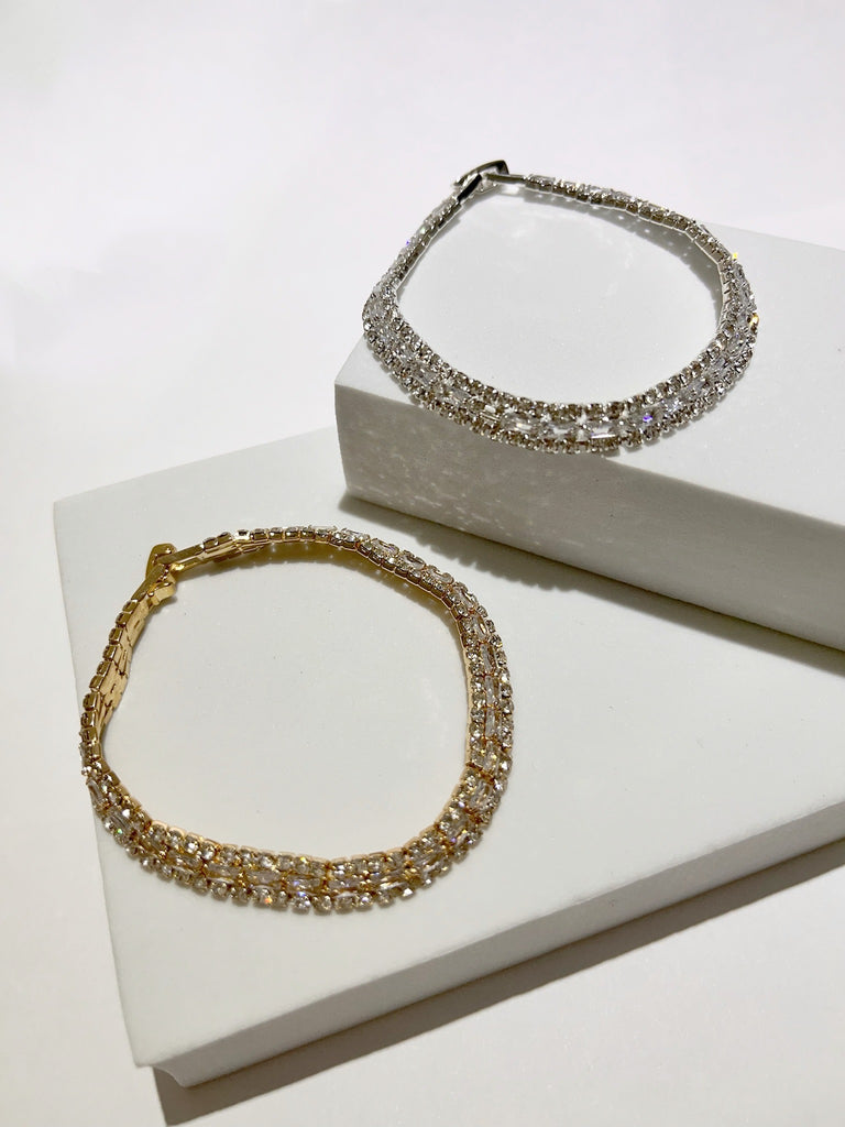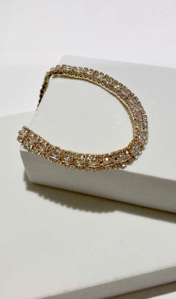 Take your look from sweet to oh-so-sophisticated when you pair it with the Chic & Shines Gold Rhinestone Bracelet! Shiny, gold metal based, elevated and delicate bracelet.
