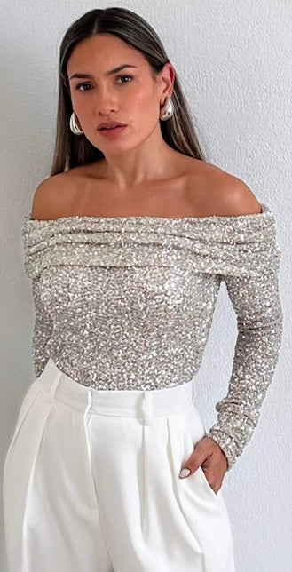 Gorgeous Off-The-Shoulder Sequins Top