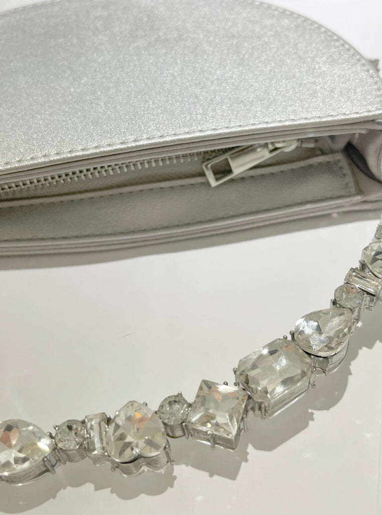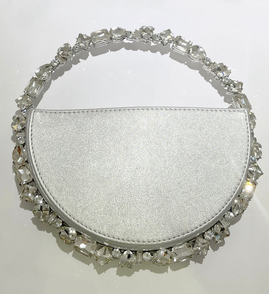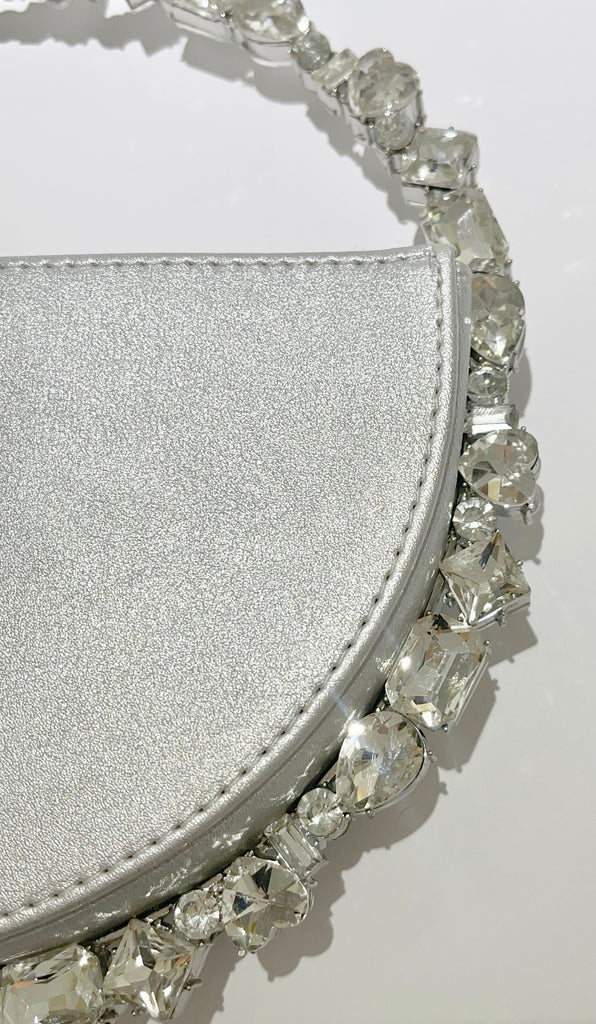 Add a perfect addition like the Spectacular Round Gold Stones Hand Bag to create the epitome of complement-worthy ‘fits! A vegan leather multi shape clear stones all around the handle bag.