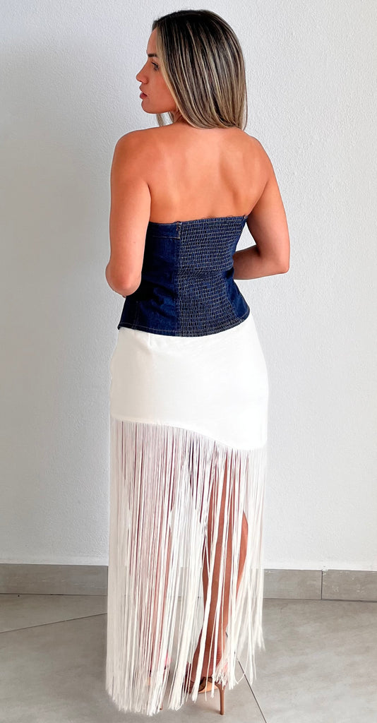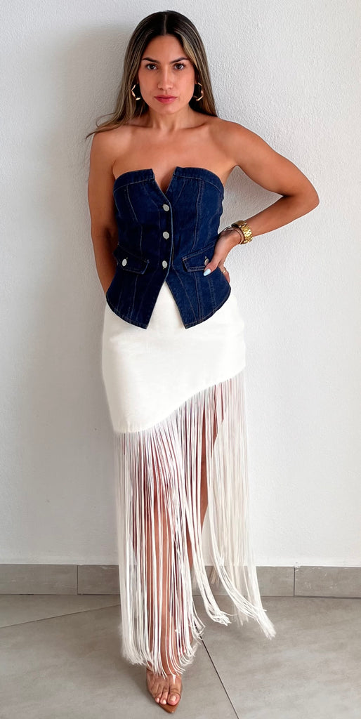 Gorgeous Fringes Asymmetrical Maxi Skirt