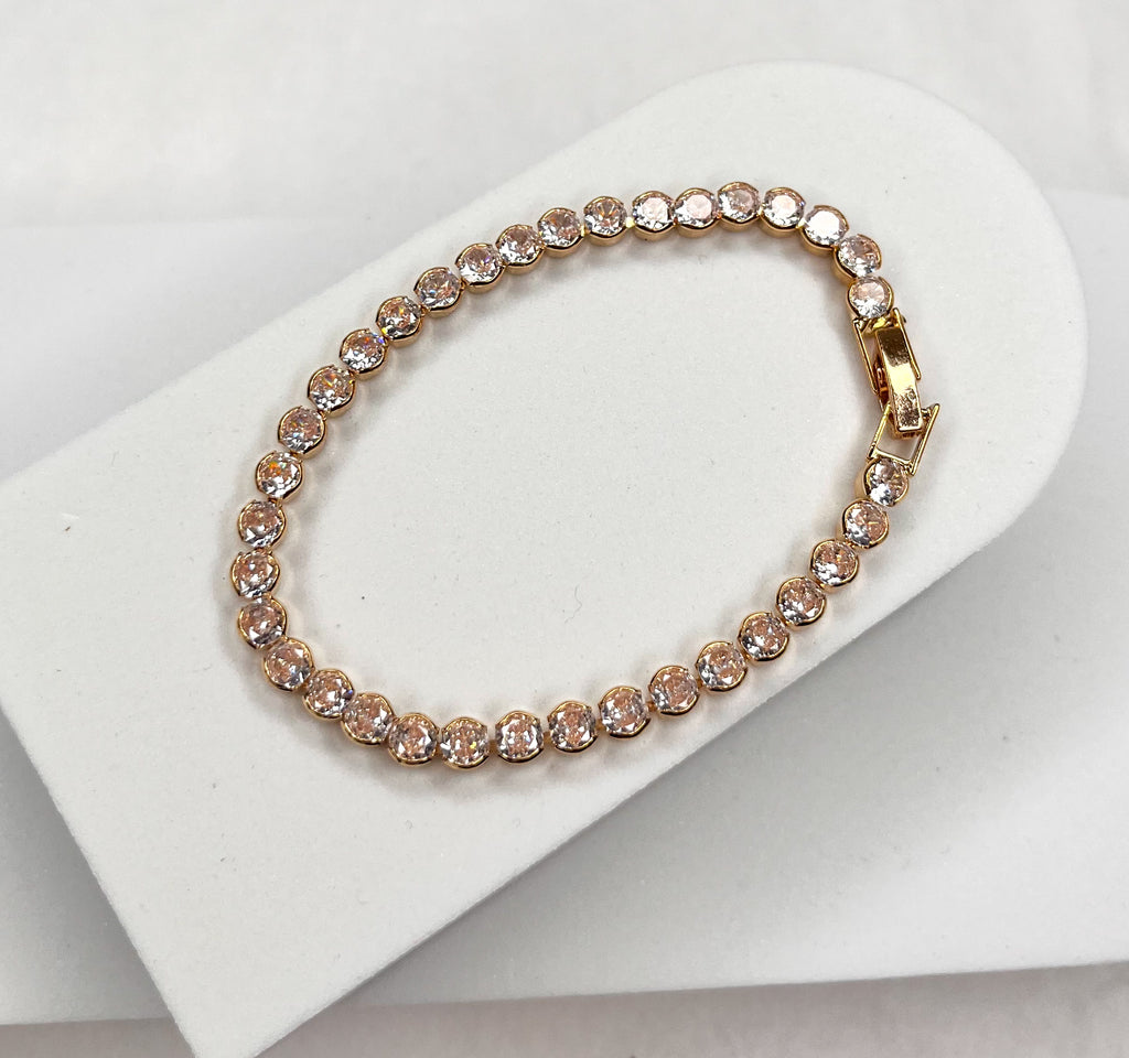 Take your look from sweet to oh-so-sophisticated when you pair it with the Chic & Shines Gold Rhinestone Bracelet! Shiny, gold metal based, elevated and delicate bracelet.